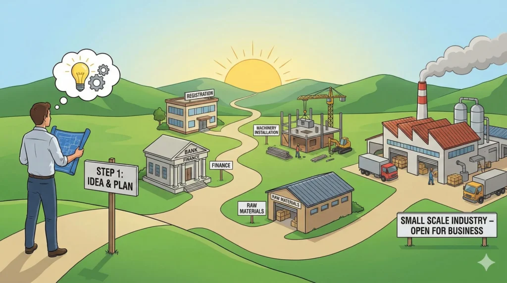 Q1: What is the first step to start a small scale industry? The first step is the decision to be self-employed. Before investing money, you need to conduct a SWOT analysis to understand your personal strengths, weaknesses, and the opportunities available in the market.